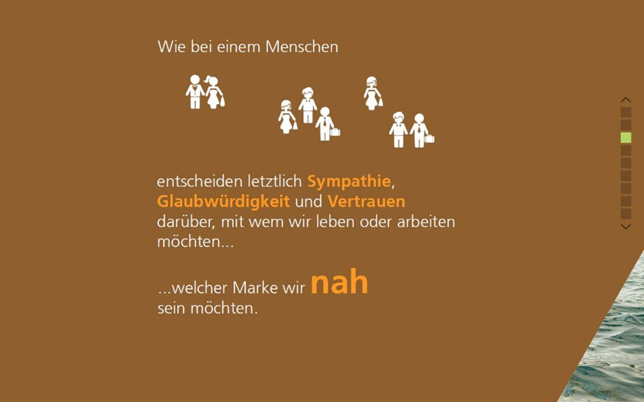 Während der Lerner per "vertical parallaxe scrolling" das erzählerische WebBasedTraining durchwandert, erfährt er durch animierte Infografiken und ausdrucksstarke Typografie alles Wichtige zur Markenpersönlichkeit der Bank, zur Geschichte der Marke und zum Corporate Design.